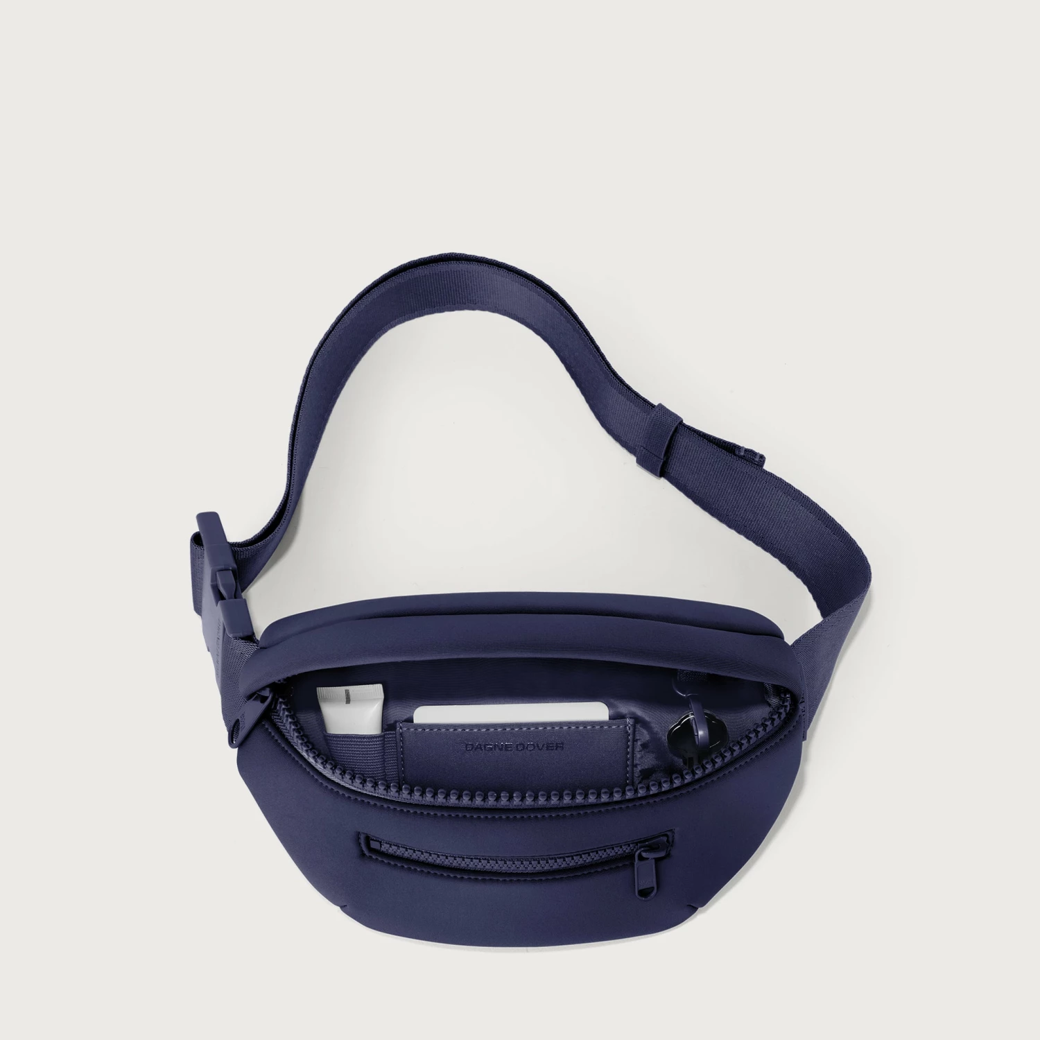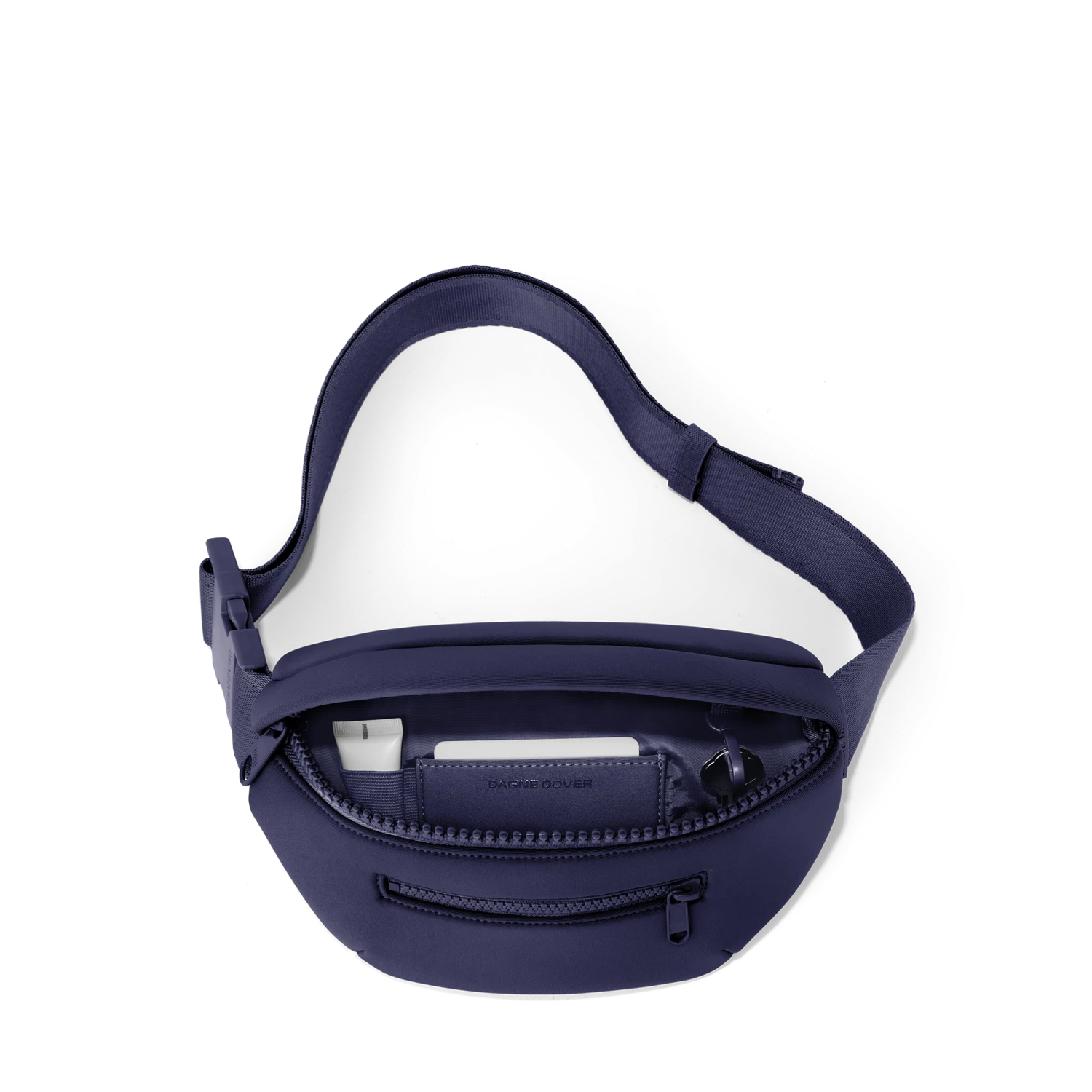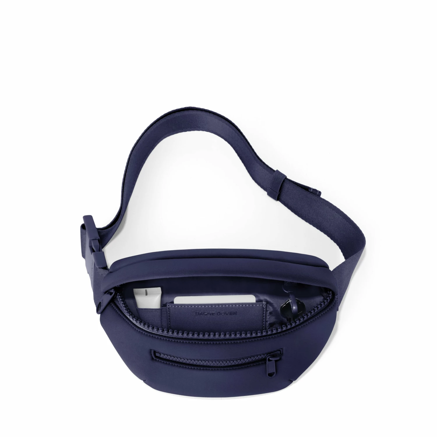 Whether youre an avid explorer or just like to keep things hands-free on the regs, The Ace Fanny Pack is your perfect companion. This waterproof neoprene pack has an adjustable strap, so you can decide how high or low your wearing style wants to go. The front and main pockets are perfect for everyday must-carry items, and there are two sneaky pockets (one interior, one exterior) great for keeping your cash and cards and other flat valuables safe and snug. This pack even has its own key clip to keep keys locked up while youre sightseeing or errand-running. You dont have to be a tourist to sport this fanny pack. But you could be. Youd just be the most stylish tourist around. Unless youre wearing a Hawaiian shirt or sandals with socks. In which case, we cant help you.