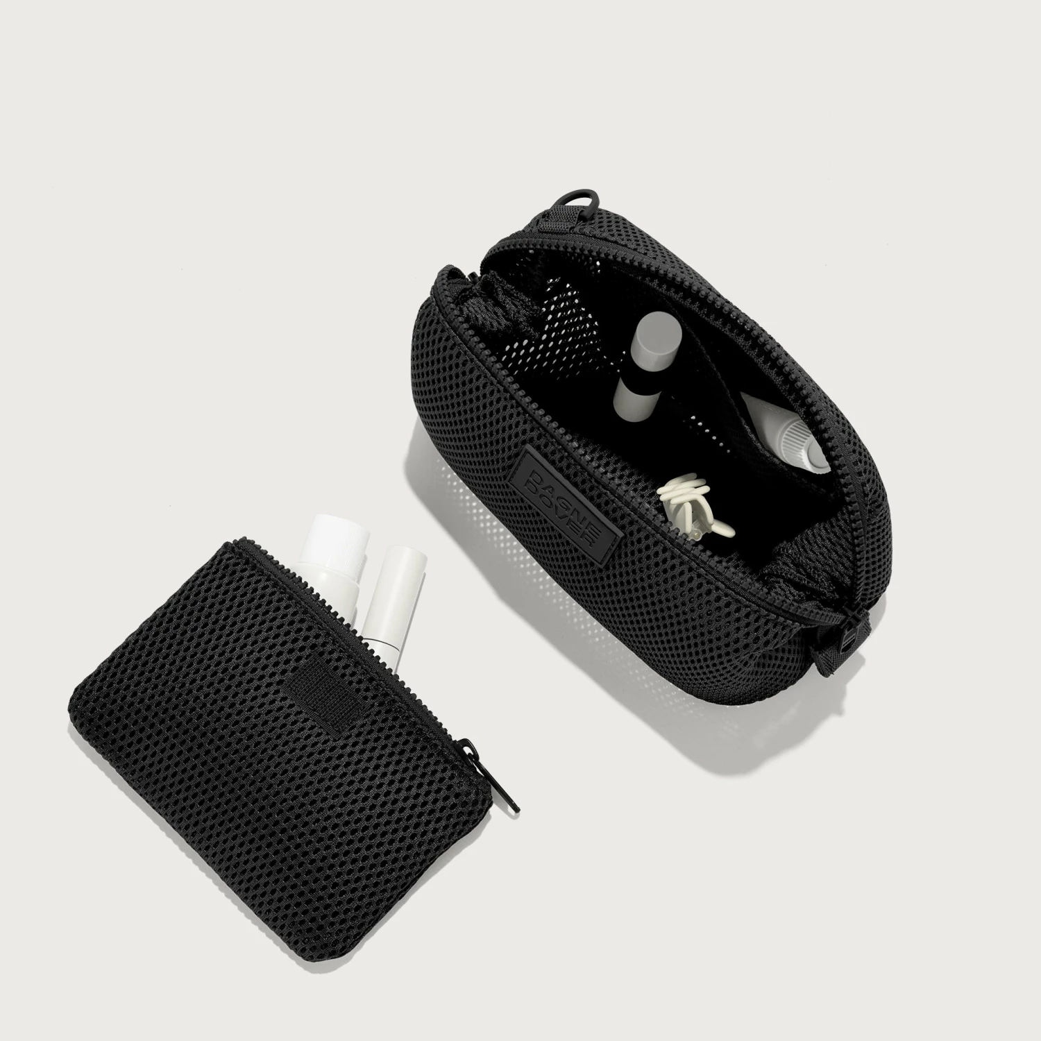 Bring essential toiletries anywhere with our small Air Mesh travel organizer bag. Made for travel-sized faves, it’s the perfect bag to pop into your carry-on or gym bag for easy all-day access. Cushiony. Lightweight. Recycled. The Hunter will never weigh you down. Smartly designed with a removable zippered compartment and side slip pocket for items like a small comb, contact lens case or tissue packet. Interior elastic loops wrangle items like lip balm, cords, razors or your tiny travel fragrance. Small and sporty, it’s the high-performance Air Mesh shower organizer built to keep up.