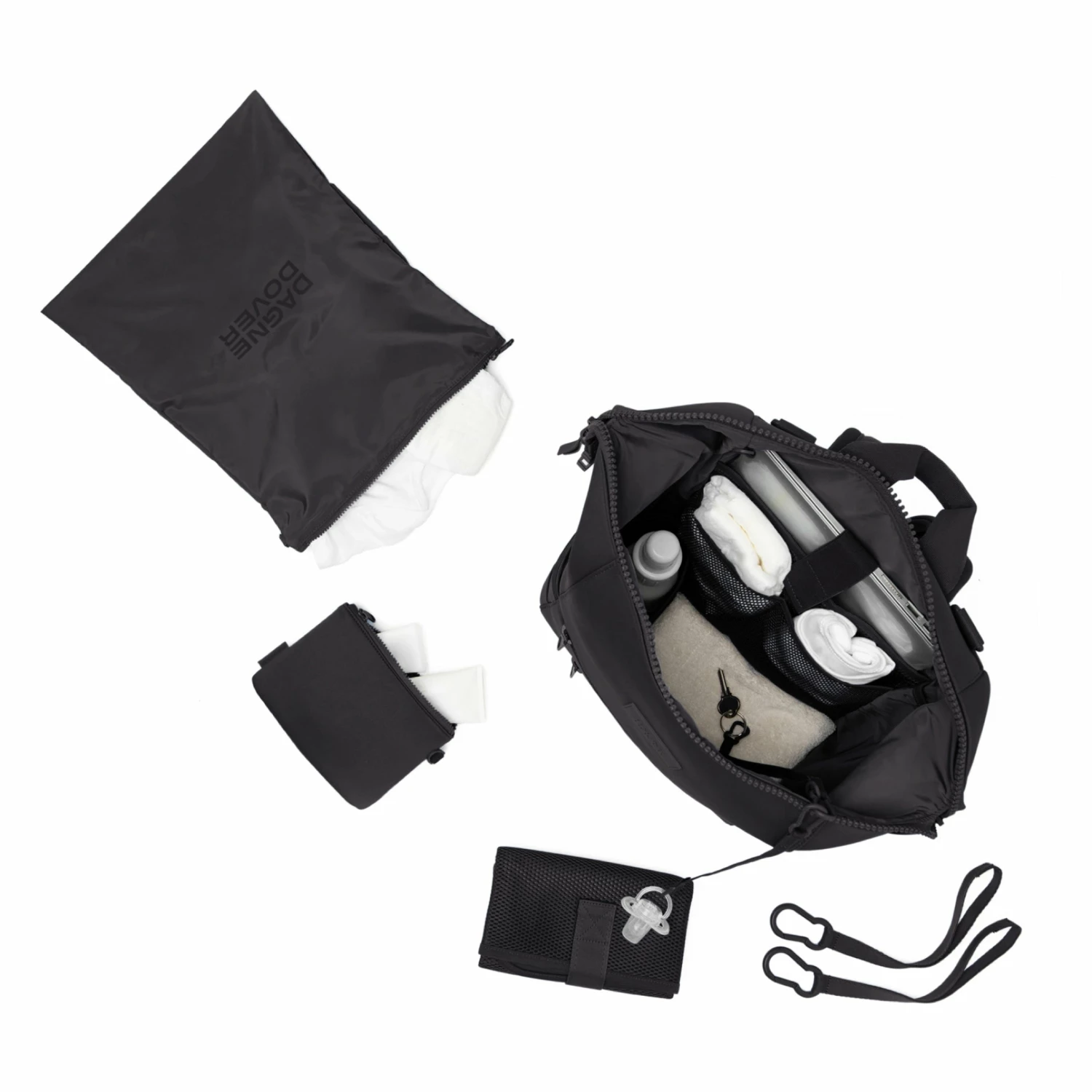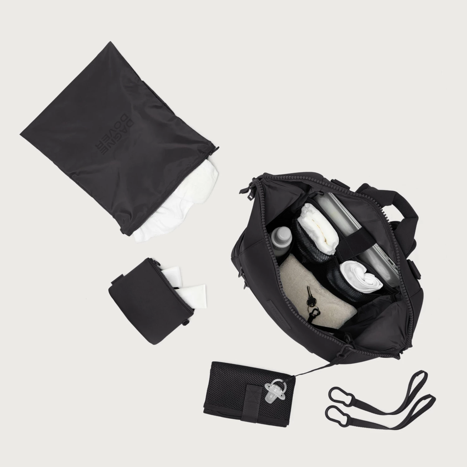 This ones for all the Indi kids. Part backpack. Part diaper bag. The Indi has plenty of storage for extra diapers and clothes and also has pouches and pockets for wipes, toys, snacks, and more. Not only that, but its got two key leashes–one for keys and one for binkies. And if your new little one has an older sibling that likes to (or needs to) be distracted by a tablet, theres room for that too.