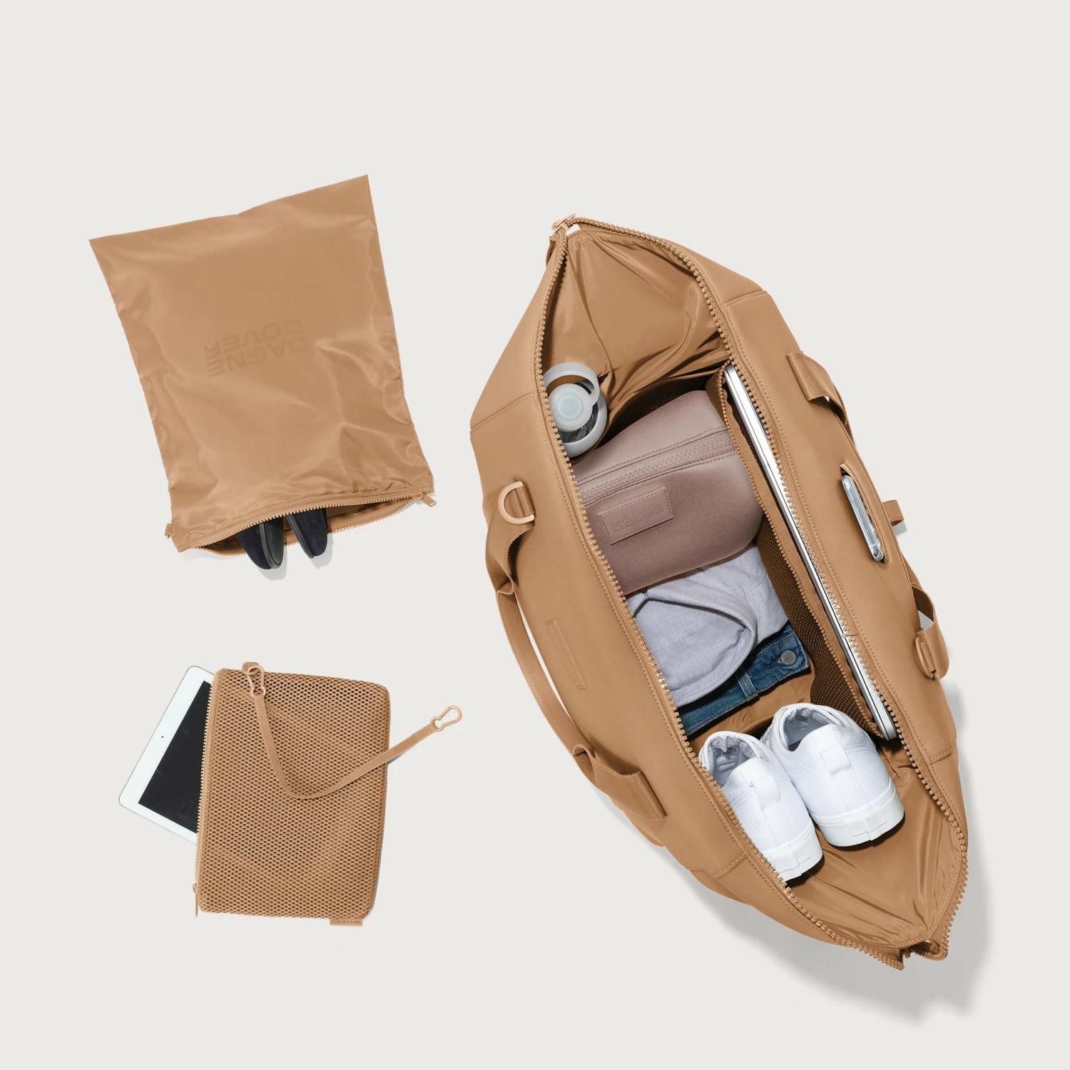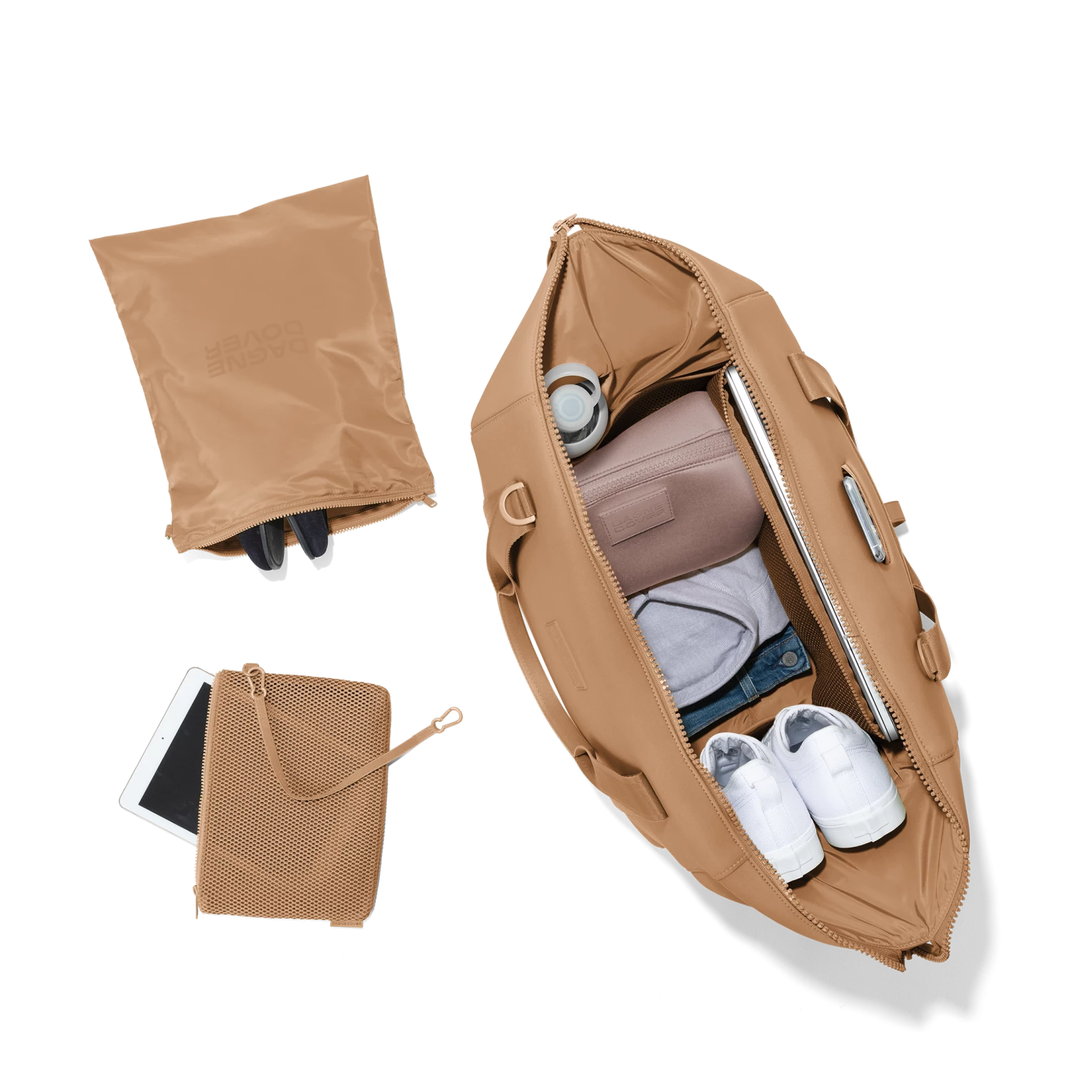 Extra long weekend? You need an extra large weekender. Whether youre taking a planned vacay or extending your Sunday into Tuesday, our extra large Landon Carryall has the most room of all its smaller siblings. Lightweight and chic on the outside, organized on the inside, its ready for wherever you want to take it. It has a dust bag for shoes, a leash for keys, and a pouch for any other goodies you cant travel without. And whats a weekender without a removable crossbody strap and two sneaky zipper pockets that keep your unmentionables from being, well, mentioned? And if you’re thirsty, theres a place for your bottle (of water or wine).