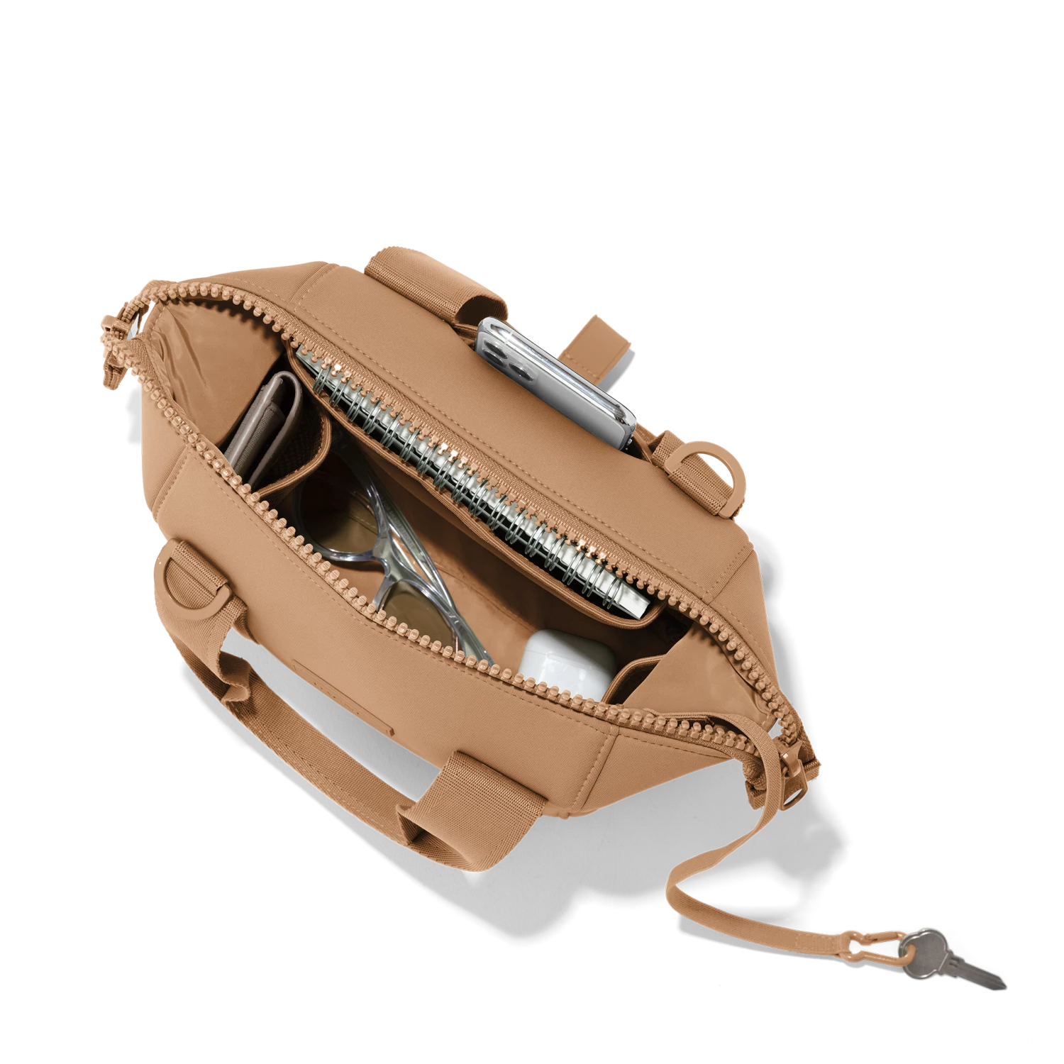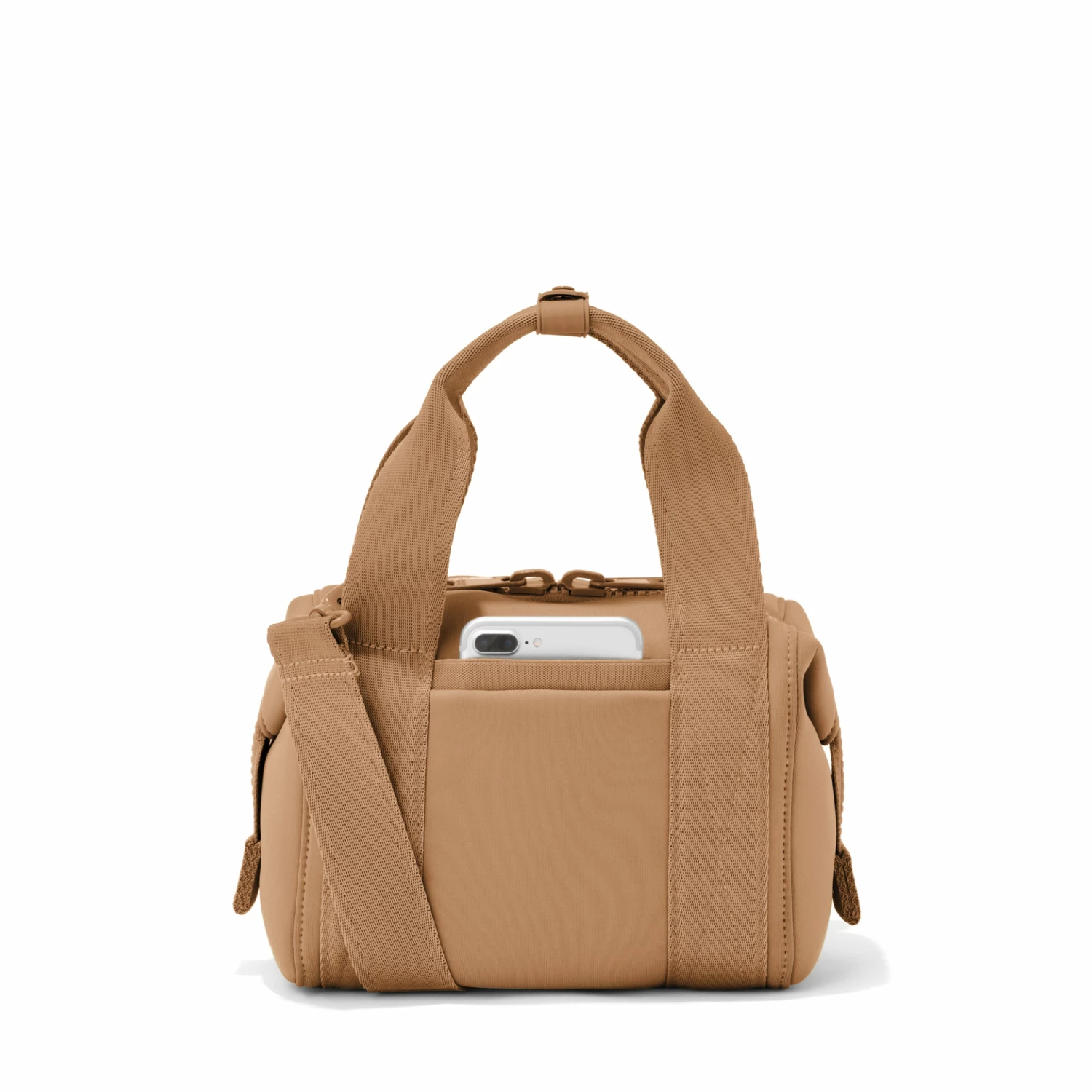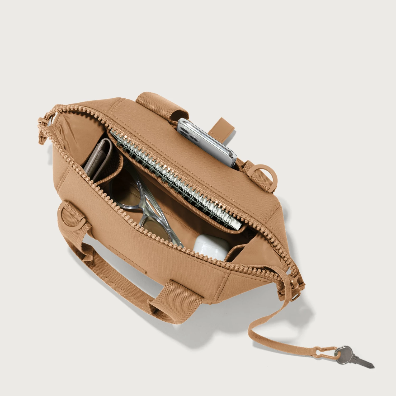 Here’s a little ditty about something itty bitty. Well, not that itty bitty. The XS Landon is the perfect mini sidekick when you’re running around and getting things done. Or just out and about, procrastinating getting things done. While it looks like a tiny duffel, it operates more like a crossbody. It even has a crossbody strap. With multiple interior slip pockets, the XS Landon in Camel is the perfect place for all of your essentials, like your phone, wallet, and keys. Speaking of keys–they can run, but they can’t hide. Our stretch key leash makes sure of that. And if you want to keep your phone handy, the exterior slip pocket is the perfect hiding spot. The XS Landon may be extra small, but that just means it’s extra mighty.
