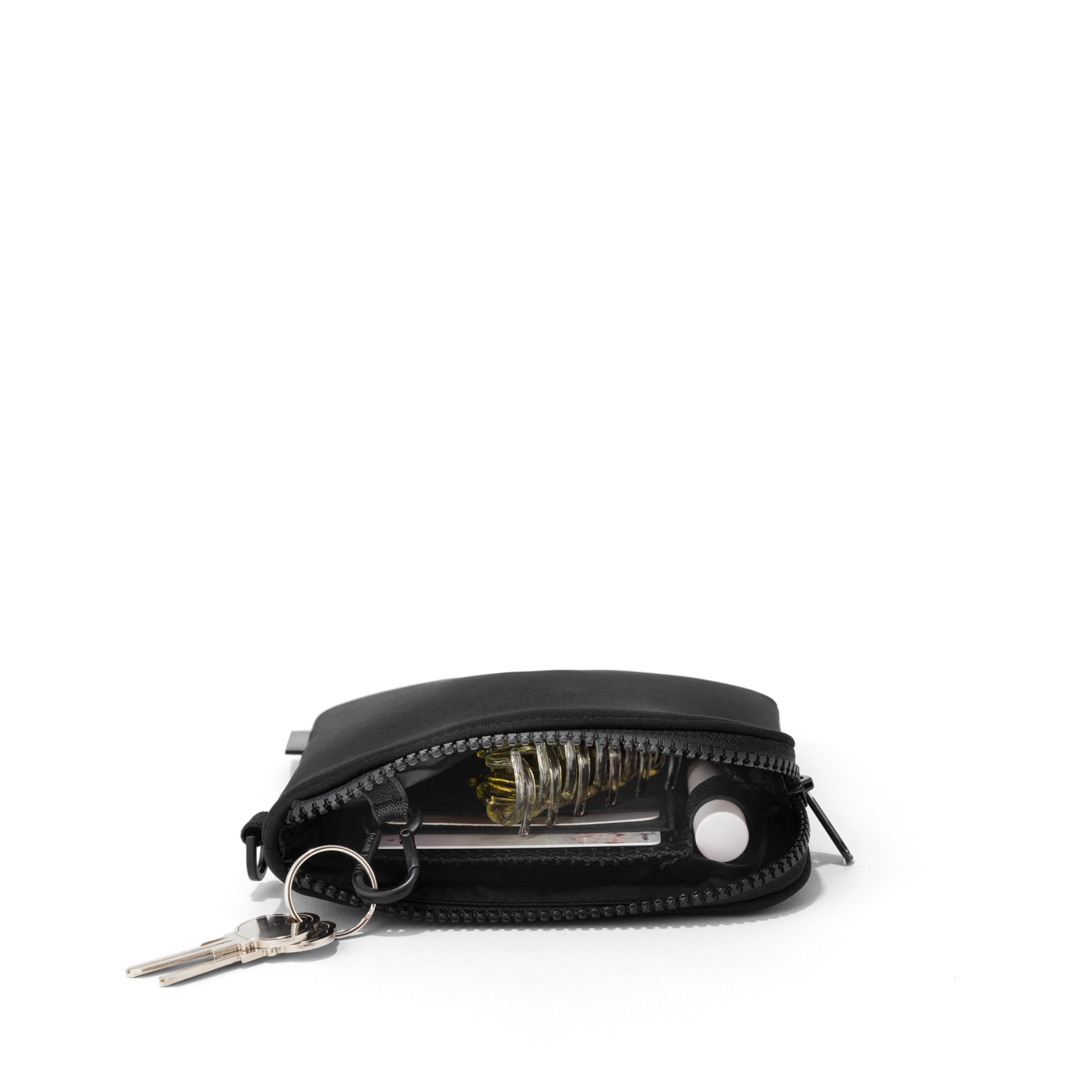 This Skye has anything but limits. Okay, its not a Mary Poppins bag but this essentials pouch does hold just what you need. Made from premium Neoprene with an Airmesh slip pocket, the Skye adds some style to your essentials run and the top zipper opening keeps your essentials safe from getting sandy on sunny beach days. With two credit card slots, a key clip and multiple pockets, this small zipper pouch is also a perfect place to store your sanitation station. Phone? Keys? Wallet? Mask? Hand sani? Youre good to go.