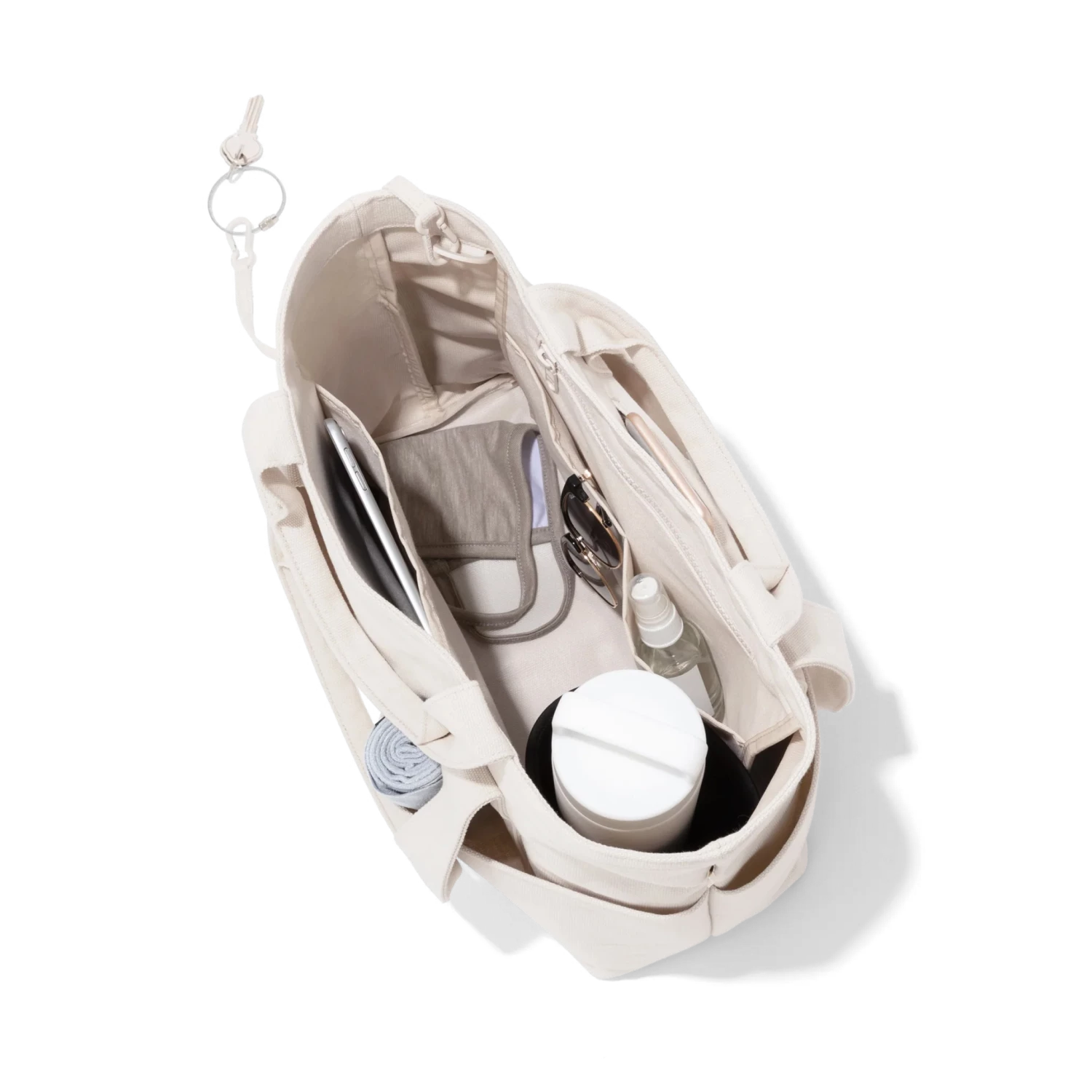 Living La Vida Small. This small canvas tote holds a lot, even if youre just storing a lot at home. But if you do brave the great outside, the small Vida is the most stylish excuse to leave the house. This eco friendly tote bag is made from 100% organic cotton canvas and has three interior pockets and four exterior pockets to store the things you need most (think hand sani, cute mask, and gloves if youre a gloves person). Its the perfect beach bag, grocery bag, or weekly errand run bag. The Vida also doubles as a gym bag and even has a Neoprene water bottle holder (or wine bottle holder if you and the gym are on a break).